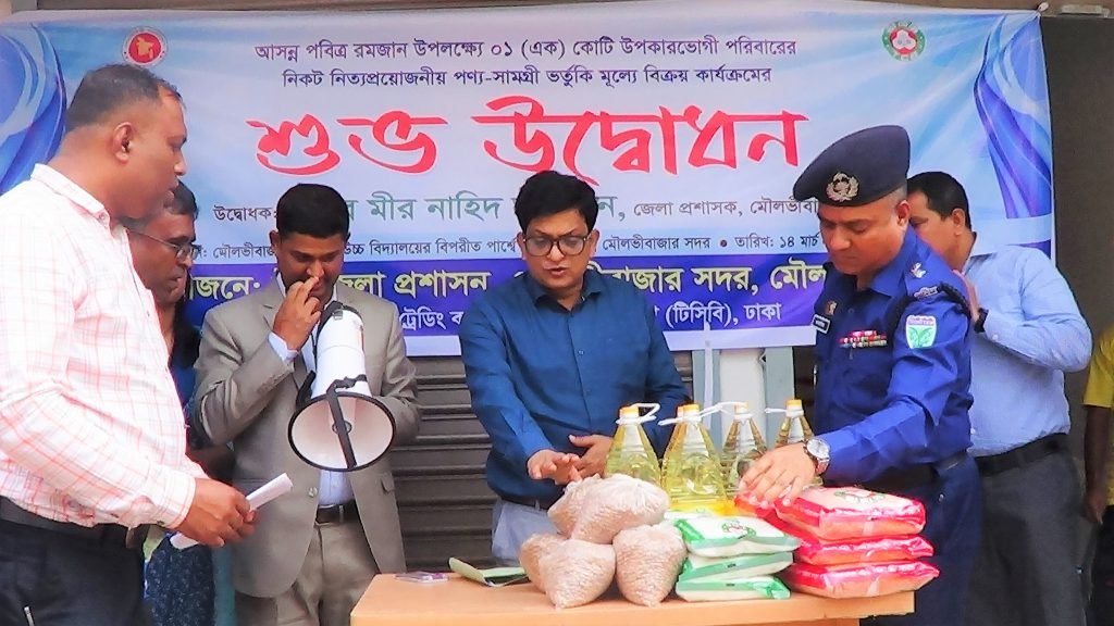 মনজু বিজয় চৌধুরী॥ আসন্ন পবিত্র রমজান উপলক্ষে মৌলভীবাজার জেলার ৭২ হাজার ২শত পরিবারের মধ্যে উপকারভোগী পরিবারের নিকট নিত্যপ্রয়োজনীয় পণ্য- সামগ্রী মূল্যে বিত্রুয় কার্যত্রুমের শুভ উদ্ধোধন করেন উদ্বোধক জেলা প্রশাসক মীর নাহিদ আহসান।
