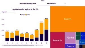 পরের বছর অর্থাৎ ২০২২ সালে বাংলাদেশিদের আশ্রয় আবেদনের সংখ্যা আগের বছরগুলোর তুলনায় বৃদ্ধি পায়। ওই বছর ৩৩ হাজার ৭৩১ জন বাংলাদেশি আশ্রয়ের আবেদন করেন। আর গত বছর অতীতের সব রেকর্ড ভেঙেছে বাংলাদেশিদের আশ্রয়ের আবেদন সংখ্যা। ২০২৩ সালে রেকর্ড ৪০ হাজার ৩৩২ জন বাংলাদেশি ইইউ প্লাসে আশ্রয় চেয়ে আবেদন করেছেন।