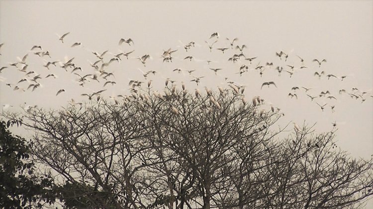 গাছে গাছে সাদা-কালোসহ বিভিন্ন রঙের ছোপ বাড়তে শুরু করে। পাখির দল রাত কাটাতে পুরো বাড়িটিতে তখন তৈরি হয় প্রাণ-প্রকৃতির বুনো মেজাজ। উঁচু পাকা দেয়ালঘেরা বাড়ির ফটক দিয়ে ভেতরে ঢুকতেই গাছে গাছে শুধু পাখিরই দেখা মেলে।