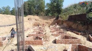 স্থাপনার চতুর্পাশে রাখা রয়েছে মাটির স্তুপ। টিলা শ্রেণির ভূমি কেটে প্রায় ৫ ফুট গভীর থেকে মাটি কেটে সমতলে তৈরি হচ্ছে এই স্থাপনার কাজ। কিসের স্থাপনা নির্মাণ হচ্ছে জানতে চাইলে ঠিকাদার মুজিবুর রহমান (মুজিব ঠিকাদার) জানান, এখানে সেলিনা-মোমেন ফাউণ্ডেশনের নির্মাণের কাজ চলছে। একমাসের মধ্যে কাজ সম্পন্ন করা হবে।