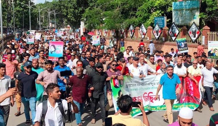 নগরীর সরকারি আলিয়া মাদ্রাসা থেকে শুরু হওয়া এক বিশাল বিক্ষোভ মিছিল নগরীর প্রধান প্রধান সড়ক প্রদক্ষিণ শেষে রেজিস্ট্রারী মাঠে গিয়ে শেষ হয়।