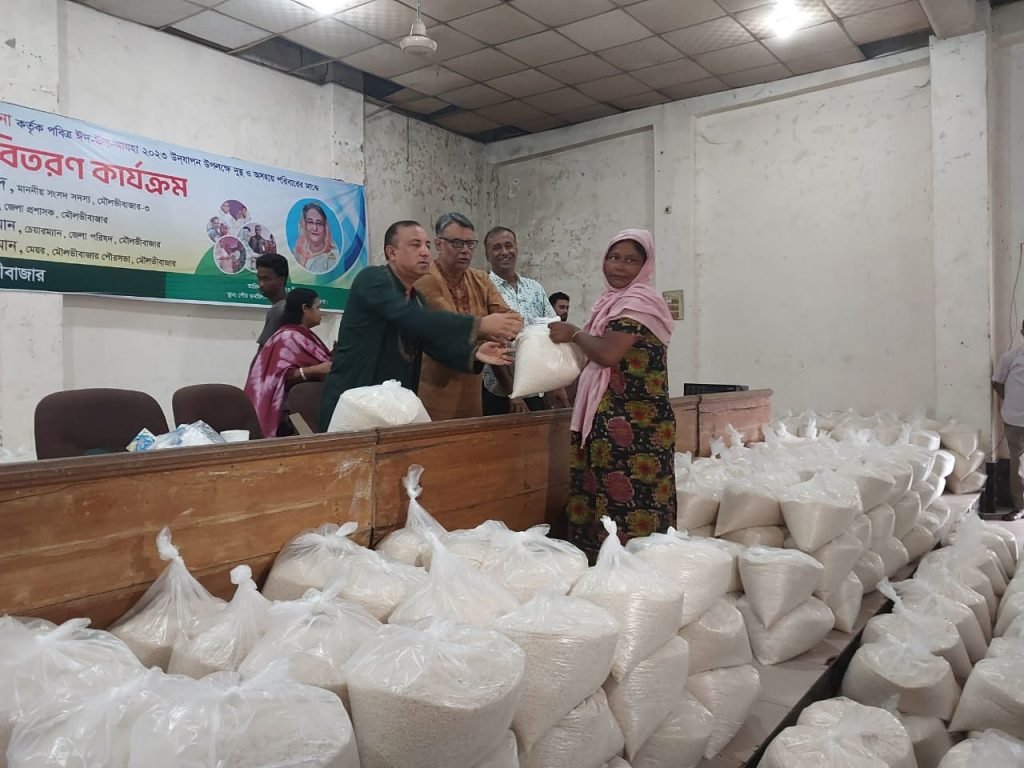 মনজু বিজয় চৌধুরী॥ প্রধানমন্ত্রী শেখ হাসিনা কর্তৃক পবিত্র ঈদুল আযহা ফিতর ২০২৩ উদ্যাপন উপলক্ষে হতদরিদ্র পরিবারের মাঝে মৌলভীবাজার পৌরসভা আয়োজনে ৪ হাজার ৬শ ২১জনকে ভিজিএফ চাল বিতরণ করা হয়েছে।
