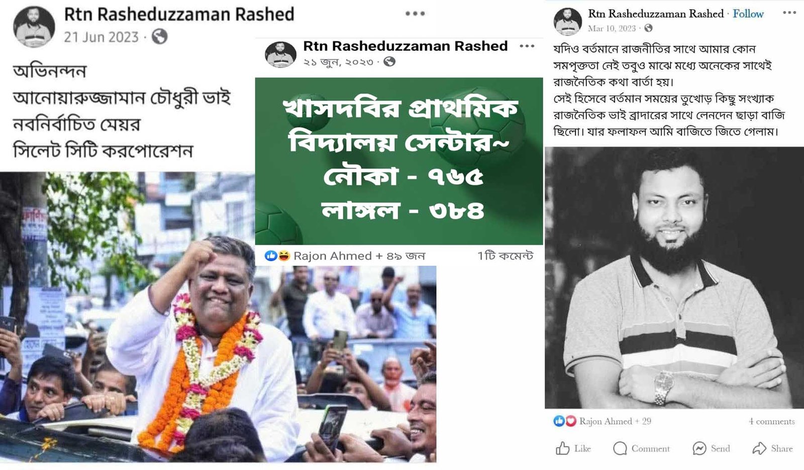 এর আগে তিনি ২০১৯ বলেছিলেন আর কোনদিন রাজনীতি করবেন না তখন ছিলো ২০১৮ নির্বাচনের পর আওয়ামীলীগ অবৈধ সরকারের গঠন। আর বর্তমান দেশের পরিস্থিতি পাল্টানোর সাথে সাথে সেই বাক্যের রচনাটাও উধাও হয়ে গেল। রাশেদ আওয়ামীলীগের নেতা মিসবাহ সিরাজ, নাদেল এবং তোফায়েলসহ বেশ কয়েকজনের ছত্রছায়ায় নৌকার পক্ষে সমর্থনে বিগত দিনে কাজ করে গেছেন। কেন্দ্রীয় নেতারা বিষয়টি কিভাবে দেখছেন তা এখন সময়ের অপক্ষায়।