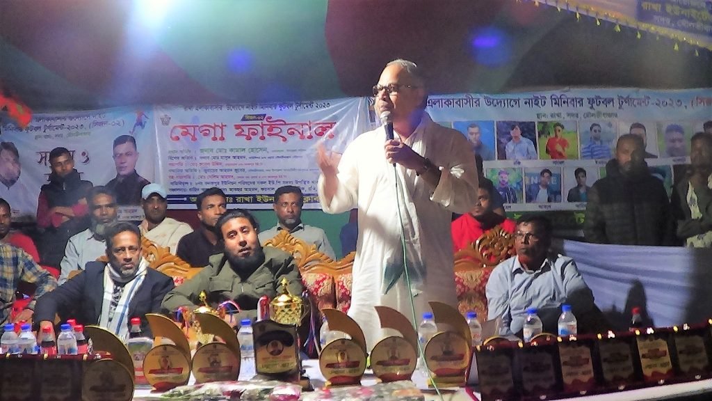 মনজু বিজয় চৌধুরী॥ মৌলভীবাজার সদর উপজেলার কনকপুর ইউনিয়নের ৭ ওর্য়াডে রাখা ইউনাইটেড ক্লাবের আয়োজনে নাইট মিনিবার ফুটবল টুর্ণামেন্টের সিজন ০২ এর ফাইনাল খেলা ও পুরষ্কার বিতরনী অনুষ্ঠান সম্পন্ন হয়েছে। বিশিষ্ট ক্রীড়া ব্যক্তিত্ব ও তরুণ সংগঠক ইউনাইটেড ক্লাবের সভাপতি লন্ডন প্রবাসী সালামন আহমেদ রাহিম আহমদ ও সৌদি প্রবাসী ফয়সল আহমদের উদ্যোগে ২৩ ফেব্রুয়ারি বৃহস্পতিবার সন্ধ্যায় রাখা গ্রামের সংলগ্ন মাঠে নাইট মিনিবার ফুটবল টুর্ণামেন্টের মেগা ফাইনালটি অনুষ্ঠিত হয়।৮ নং কনকপুর ইউনিয়নের চেয়ারম্যান মোঃ রুবেল উদ্দিনের সভাপতিত্বে অনুষ্ঠানে প্রধান অতিথি হিসেবে উপস্থিত ছিলেন মৌলভীবাজার সদর উপজেলা চেয়ারম্যান মোঃ কামাল হোসেন। বিশেষ অতিথি হিসেবে উপস্থিত ছিলেন পৌরসভার ৯নং ওয়ার্ড কাউন্সিলর মাসুদ আহমদ ,সদর উপজেলা আওয়ামীলীগের প্রচার ও প্রকাশনা সম্পাদক জুবায়ের আহমদ জুবের,সহ-সভাপতি ৮ নং কনকপুর ইউনিয়নের ৭ নং ওয়ার্ড মেম্বার মোঃ সেলিম আহমদ । এছাড়াও আরও উপস্থিত ছিলেন ৮ নং কনকপুর ইউনিয়ন পরিষদের সকল ইউপি সদস্য সহ উপজেলার বিভিন্ন ইউনিয়ন থেকে আগত ক্রিড়ামুদি ও এলাকার গণ্যমান্য ব্যক্তি বর্গ।উক্ত নাইট মিনিবার ফুটবল টুর্ণামেন্টে সঞ্চালনা করেন রাহিম আহমদ ও পরিচালনায় ছিলেন আকছর আহমদ,উক্ত টুর্ণামেন্টে সহযোগিতায় ছিলেন ইউনাইটেড ক্লাবের সভাপতি লন্ডন প্রবাসী সালমান আহমদ, ফয়সল আহমদ, রাসেল আহমদ, শরীফ আহমদ, রকি আহমদ, সাহেল আহমদ ও মিটন বৈদ্য। উক্ত ফাইনাল খেলায় সিলেট স্ট্রাইকার্স কে ০-১ গোলে হারিয়ে জয়ী হয় মামা ভাগনা মির্জাপুর এফসি স্পোর্টিং ক্লাব।বিজয়ী দলকে ১ম পুরস্কার হিসেবে ৮ নং কনকপুর ইউনিয়নের চেয়ারম্যানে রুবেল উদ্দিনের পক্ষ থেকে নগদ ২০ হাজার টাকা ও একটি ট্রপি প্রধান করা হয় রানারআপ দলকে ২য় পুরস্কার হিসেবে ৮ নং কনকপুর ইউনিয়নের ৭ নং ওয়ার্ডের মেম্বার মোঃ সেলিম আহমদের পক্ষ থেকে নগদ ১০ হাজার টাকা ও একটি ট্রপি প্রধান করা হয় এছাড়াও প্রধান অতিথি,বিশেষ অতিথিবৃন্দ সবাই ও এলার সম্মানিত ব্যাক্তিদের সম্মাননা স্মারক দেওয়া হয় রাখা ইউনাইটেড ক্লাবে পক্ষে থেকে। উল্যেখ: ১৫ ফেব্রুয়ারি শুভ উদ্বোধন করা হয়। এ খেলার ১৬ টি টিম অংশ গ্রহন করে।