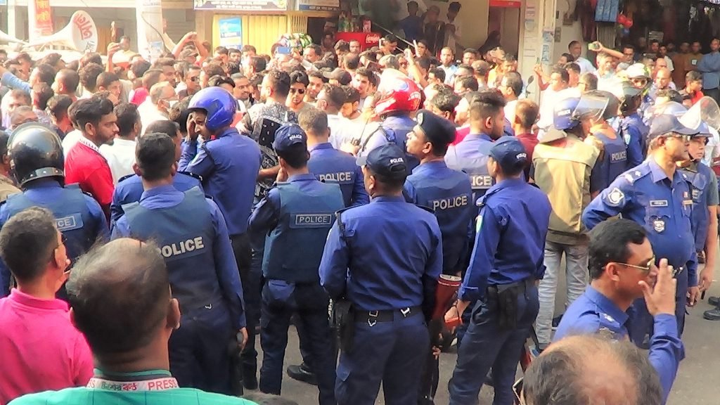 সাবেক এমপি নাসের রহমানের ওপর হামলার প্রতিবাদে বিএনপির বিক্ষোভ মিছিলে পুলিশের বাধা