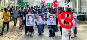 বৃহস্পতিবার সকাল ১১টায় মুরারিচাঁদ কলেজ ক্যাম্পাসে বর্ণমালার মিছিল বের করা হয়।