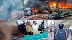 বাসের আগুন নেভাতে যাওয়া ফায়ার সার্ভিসের গাড়িতে আগুন : রাজধানীর শাজাহানপুরে ফায়ার সার্ভিসের একটি গাড়িতে আগুন দিয়েছে দুর্বৃত্তরা। শনিবার বিকেল ৫টার দিকে এ ঘটনা ঘটে। শনিবার রাতে বিষয়টি নিশ্চিত করেন ফায়ার সার্ভিসের নিয়ন্ত্রণ কক্ষের ডিউটি অফিসার শাহাজাদী সুলতানা। তিনি বলেন, খিলগাঁওয়ে বাসে অগ্নিকাণ্ডের খবর পেয়ে আগুন নিয়ন্ত্রণে যাচ্ছিল ফায়ার সার্ভিসের একটি ইউনিট। পরে ফায়ারের সার্ভিসের গাড়িতে হামলা করে দুর্বৃত্তরা। এসময় ফায়ার ফাইটারদের মারধর করে গাড়ি থেকে বের করে দেওয়া হয়। পরে ফায়ার সার্ভিসের গাড়িটিও আগুন ধরিয়ে দেওয়া হয়। গাড়িতে আগুন লাগার খবর পেয়ে ফায়ার সার্ভিসের আরেকটি ইউনিট গিয়ে আগুন নির্বাপণ করে। এ ঘটনায় আইনগত ব্যবস্থা নেওয়া হবে বলেও জানান তিনি।