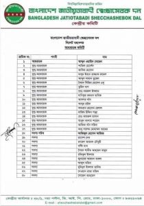 এতে সিলেট জেলা শাখায় আহবায়ক হিসেবে  আব্দুল আহাদ খান জামাল ও সদস্য সচিব  দেওয়ান জাকির হোসেন খান দায়িত্ব পেয়েছেন ।  সিলেট মহানগরের আহবায়ক হিসেবে আব্দুল ওয়াহিদ সুহেল ও সদস্য সচিব হিসেবে আজিজুল হোসেন আজিজ  দায়িত্ব পেয়েছেন ।